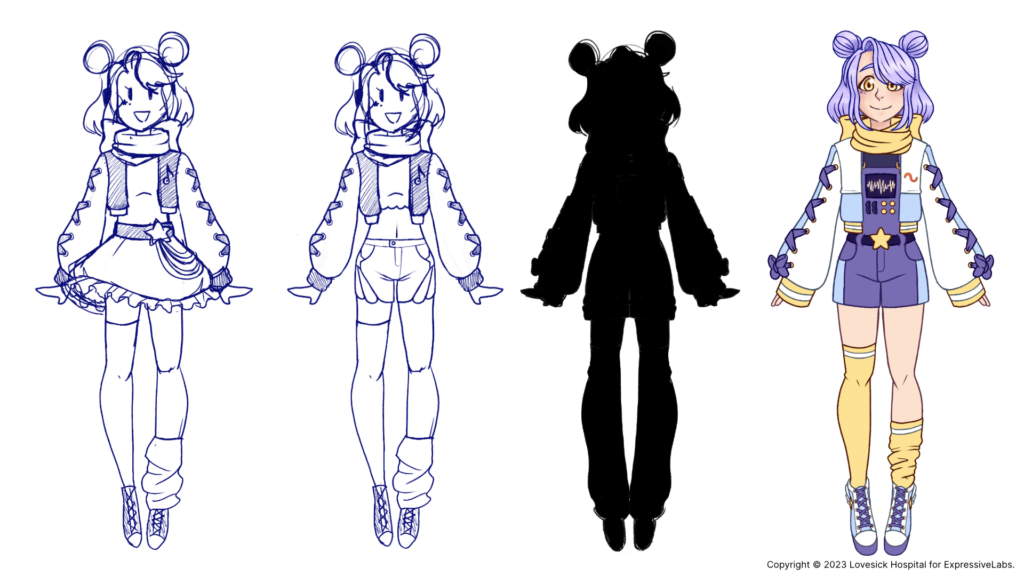 They pretty much already had an idea of what Sayaka would look like. I was very pleased with the first design already, but I also gave my input on how I felt that the outfit and hairstyle could look even better. Funnily enough, the colors they had already picked are similar to Amarynn’s color scheme (I love it). Her overall patterns are very Amarynn too, and that made me feel like I was connected to this Sayaka character right away. (For the 999th time, I love Sayaka)